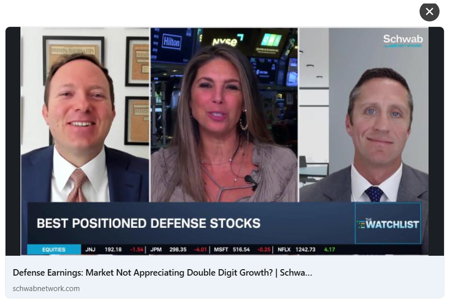 Bill Whelan discusses Clough Capital’s views on the defense sector on the Schwab NetworkBill Whelan joins the Schwab Network to discuss Clough Capital’s views on the defense sector including the current earnings landscape and top... Read More
