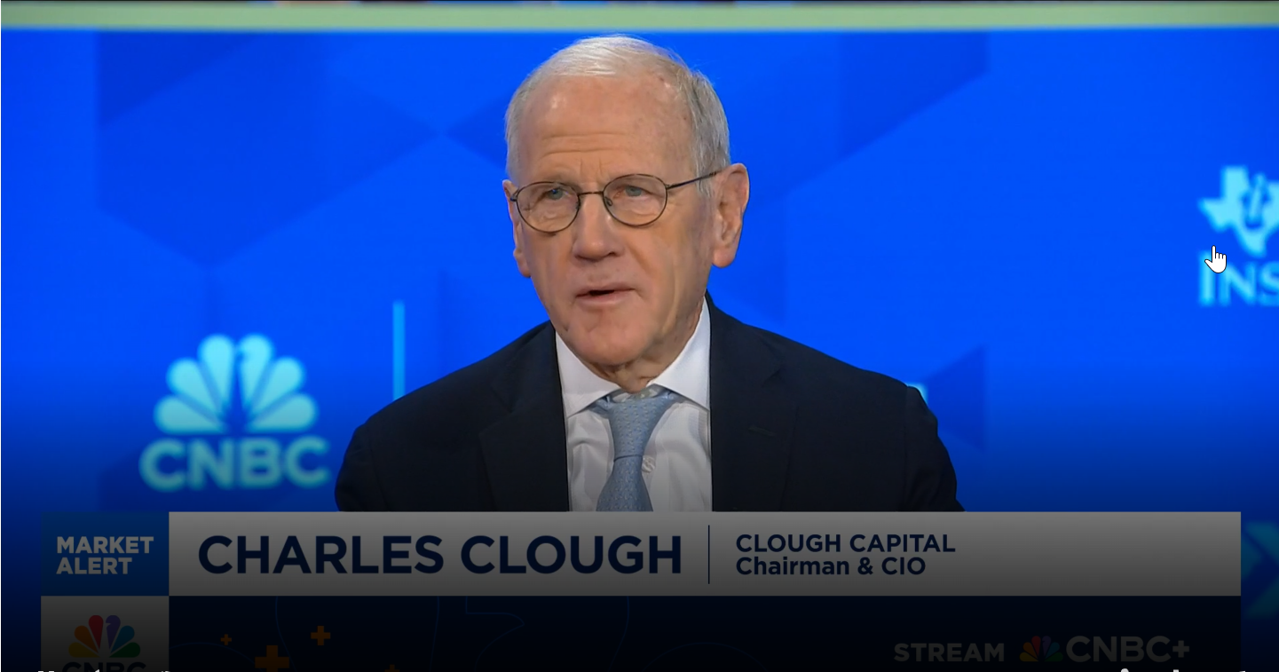 Proud Legacy. Promising Future. That’s the strength and vision of Clough Capital. About Us News & Insights Access market updates, research reports, and strategic guidance designed to keep you informed in today’s dynamic investment landscape. Vince Lorusso joins Charles Payne on Fox Business’s ‘Making Money’Vince Lorusso, CEO of Clough Capital, discusses portfolio positioning in the current market... Read More Chuck Clough joins CNBC to discuss market bubble fears.Market bubble fears: Market veteran and Clough Capital CIO Chuck Clough joins CNBC to discuss why this time is... Read More Chuck Clough joins Bloomberg Surveillance with Tom KeeneIs today’s AI-driven tech market just another bubble waiting to burst—or is it fundamentally different from the dot-com era? In this insightful... Read More Clough Capital Marks Five Year Anniversary of Actively Managed ETFsThe 5-year milestone for the Clough Select Equity ETF (CBSE) and Clough Hedged Equity ETF (CBLS) underscores Clough Capital’s position as one of... Read More Bill Whelan discusses Clough Capital’s views on the defense sector on the Schwab NetworkBill Whelan joins the Schwab Network to discuss Clough Capital’s views on the defense sector including the current earnings landscape and top... Read More The Macro Compass Q3 2025When market signals are mixed, Macro Compass is your source for clarity and perspective, straight from the Clough Capital research team. Discover... Read More Lorusso: Mega-Cap Tech is still the backbone of the U.S. economyVince Lorusso, CEO of Clough Capital Partners, discusses the resilience of mega-cap tech, defensive investment strategies amid volatility, and... Read More Clough ETFs Investor Letter Q1 2025Clough Capital reviews the capital markets as well as performance and attribution for CBSE and CBLS in this Q1 2025 Clough ETF Investor... Read More Investment Strategies ETFs Exchange Traded Funds Read More CEFs Closed-End Funds Read More SMAs Separately Managed Accounts Read More LPs Limited Partnerships Read More